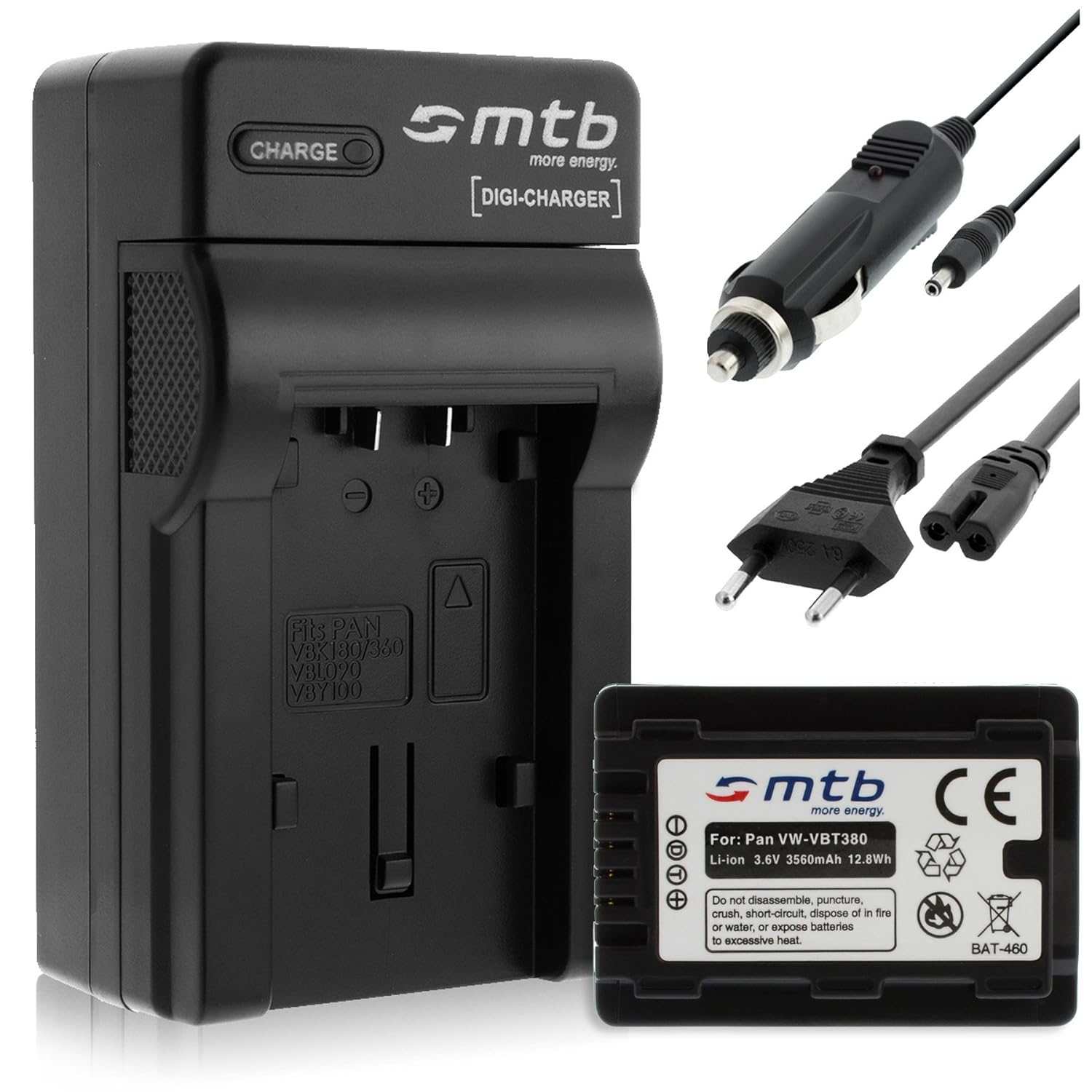 Batteria + Caricabatteria (AutoCorrente) per VW-VBT380 Panasonic HC-VX989... HC-W570, W850, WX979... v. lista! con Infochip descrizione